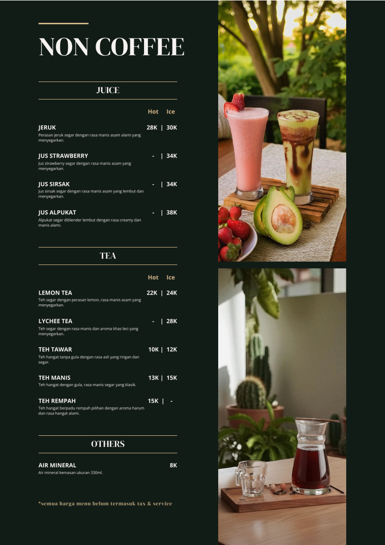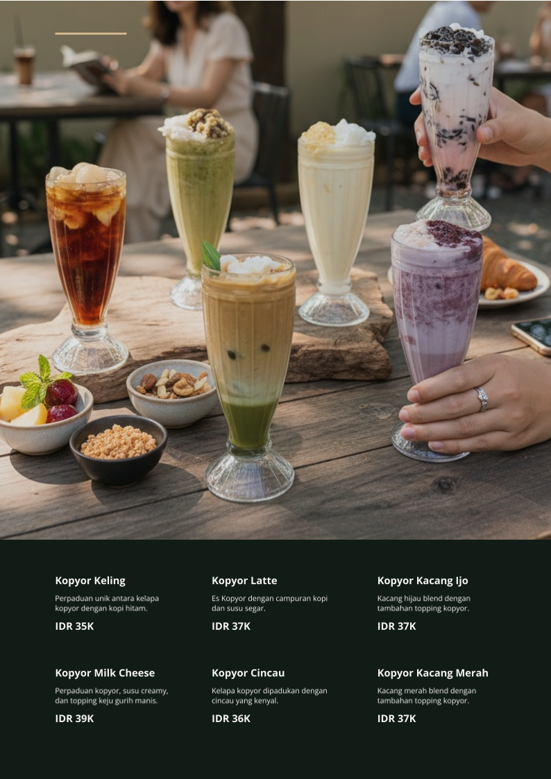 All these elements culminate into a cafe that truly embraces both tradition and modernity, providing patrons with not just a meal or a drink, but an unforgettable experience that delights the senses. Whether you're here for a casual catch-up with friends or a relaxing day in nature, Roemah Kopyor is a spot you won’t want to miss.